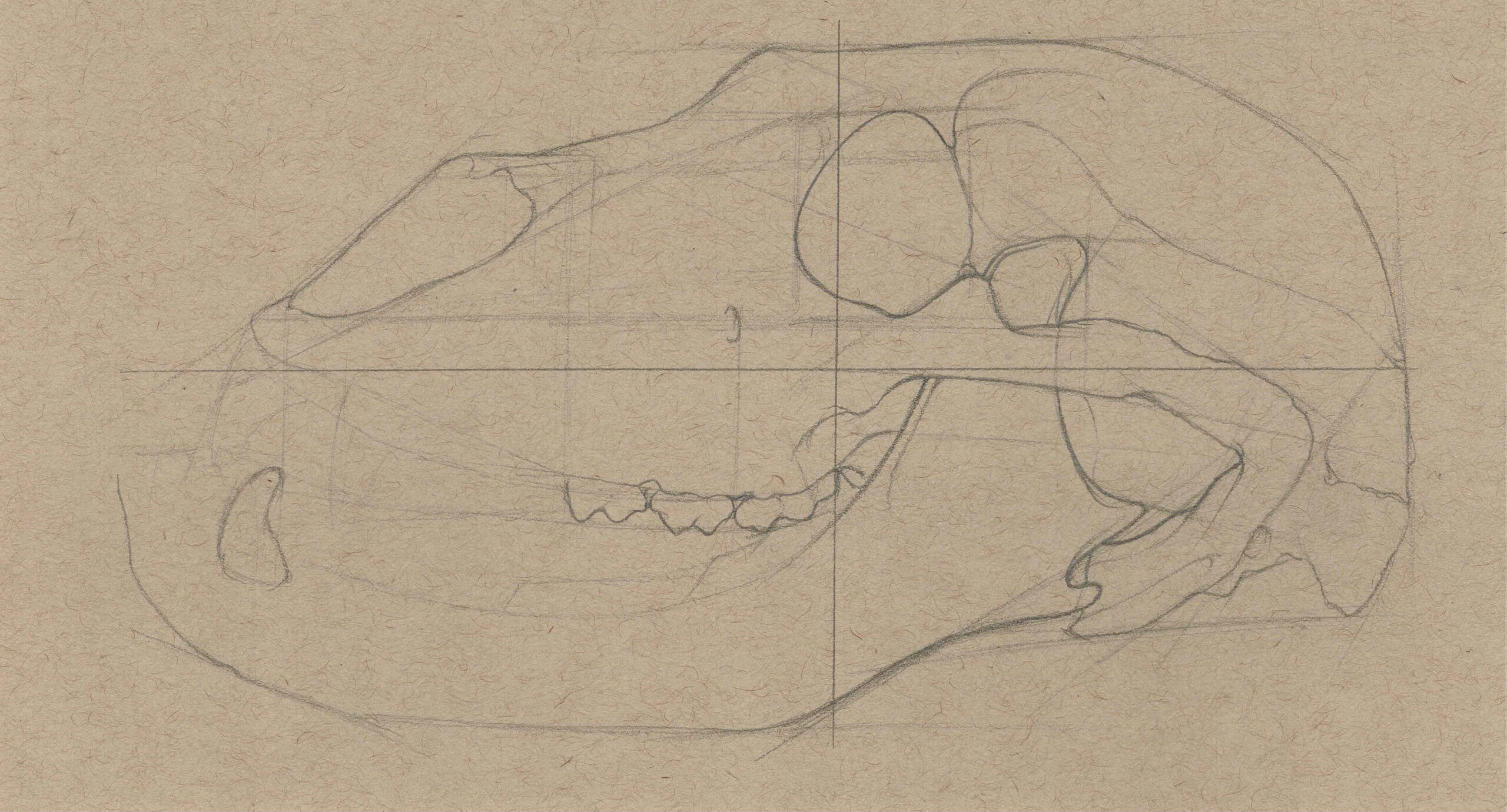 Ich hab daheim ein paar Tierschädel rumliegen. Von manchen weiss ich nicht mal mehr, woher sie sind. Sie waren einfach da. Wie Fundstücke aus irgend einem anderen Leben. Auf dieser Seite hab ich mit einem Kugelschreiber versucht, so einen Schädel einzufangen. Kein grosses Konzept. Einfach drauflos. Irgendwann ging’s nicht mehr um den Knochen selbst, sondern um das, was er auslöst. Weiter unten wird’s abstrakter. Nicht von den Linien her – sondern emotional. Ich hab versucht, die Stimmung des Schädels zu zeichnen. Falls er überhaupt eine hat. Vielleicht war’s auch nur meine eigene.